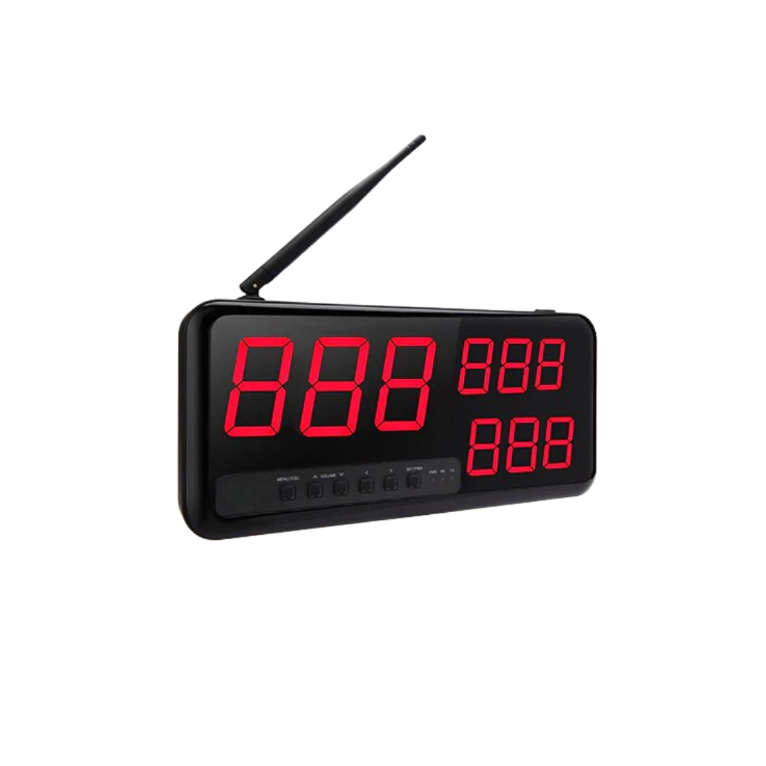 Un sistem wireless transmite apelul către panou LED, pagere sau aplicații mobile, fără cablare suplimentară.
